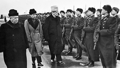 | Никита Сергеевич встречает премьер-министра Великобритании Гарольда Макмиллана, в центре Виктор Суходрев, 1959 год, Москва. «Безусловно, Хрущев — самородок, при всех его сумасбродных затеях во внешней политике и внутри страны...» |
