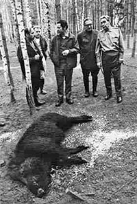 | Леонид Ильич Брежнев на охоте с госсекретарем США Генри Киссинджером, Завидово, 1973 год |