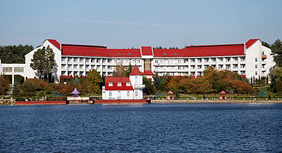 Элегантная постройка в селе Жобрин Ровенской области, сосновый лес на берегу рукотворного озера, роскошный парк, виноградник, цветники с экзотами - дышится здесь, в «ровенских Сочи», так же вольно, как на черноморском берегу. Не зря в 1994 году санаторий получил первую Госпремию Украины по архитектуре среди объектов гражданского и общественного строительства.