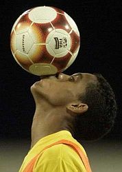 ![]() Роналдиньо и мяч: бьет — значит, любит |
