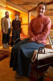 | Старшая дочь Германа Стерлигова Пелагея не так давно вышла замуж, но уже родила двух девочек — Ефросинью и Варвару. «Теперь дочь — отрезанный ломоть, у нее есть господин и начальник — муж. Владыка ее» |