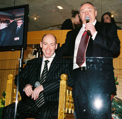 ![]() В разгар веселья Зураб Майранович усадил Дмитрия Гордона в кресло, подаренное Михаилом Саакашвили. Когда грузинский президент поинтересовался у Хромаева: "Что тебе подарить, дорогой?", тот пошутил: "Свое кресло". Саакашвили растерялся, но через некоторое время грузинский посол Григол Катамадзе доставил Хромаеву массивное дубовое кресло ручной работы. Кстати, украинский президент Виктор Ющенко преподнес юбиляру резную деревянную ложку из своей коллекции и вышиванку с автографом |