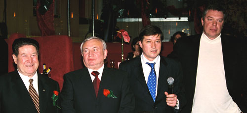 ![]() Министры спорта Украины разных лет: Михаил Бака, Иван Федоренко, Юрий Корж и олимпийский чемпион Александр Волков |