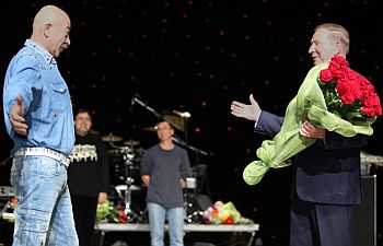 Розенбаум, кстати, тоже танцевал, причем с симпатичной поклонницей, и не отказывал себе в удовольствии поцеловать киевлянок, даривших цветы. Администраторы дворца «Украина» предупреждали: «Из-за карантина выходить на сцену и приближаться к артисту запрещено!», но Александр Яковлевич, как врач «скорой помощи», разрешил себе запрет нарушить. «Швидка медична допомога, знаете ли, еще никому не мешала, - сказал артист, награждая поцелуем миловидную блондинку. - А если без шуток, такой зал в такое время - большая честь для меня».