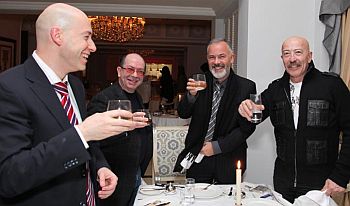 | «Кияни, прощайте! Я скоро к вам опять приеду!».Как обычно, после концерта состоялся банкет. Дмитрий Гордон, Александр Швец, Дмитрий Табачник и Александр Розенбаум |