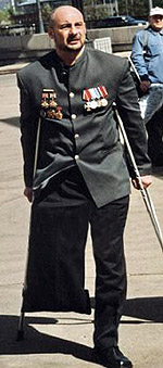 | Сергей Говорухин — кавалер ордена Мужества, ордена Сергия Радонежского, медалей «За отвагу», «За воинскую доблесть», «За участие в контртеррористической операции». В феврале 1995 года он был тяжело ранен и потерял ногу |