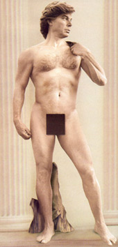 ![]() Одна из наиболее выразительных фоторабот Рождественской — «Давид» Микеланджело Буонарроти в исполнении Олега Газманова |