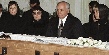 | Раиса Горбачева умерла 20 сентября 1999 года от лейкемии. Церемония прощания |