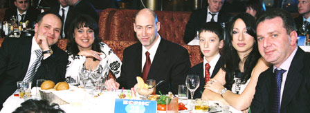 ![]() Слева направо: президент медицинской фирмы "Борис" Михаил Радуцкий, его жена Мила, Дмитрий Гордон и соучредитель клиники "Борис" бизнесмен Лев Хлявич с супругой Еленой и сыном Александром |