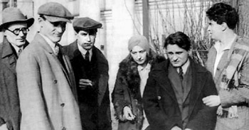 | Похороны Владимира Маяковского, 17 апреля 1930 года, фото Ильи Ильфа. Брат Ильфа Мойше Файнзильберг, Евгений Петров, Валентин Катаев, Серафима Суок-Нарбут (прообраз главной героини в романе Олеши «Три толстяка»), Юрий Олеша, Иосиф Уткин |