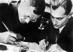 | Ильф и Петров за работой. «Разное восприятие мира способствовало плодотворному сотрудничеству. И хотя дружили они не только за письменным столом, у каждого была своя жизнь» |