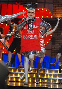 Несмотря на бурный парламентский день, успел отметиться на сцене и депутат от «Нашей Украины» лидер «Океана Эльзы» Святослав Вакарчук. Слава прикатил прямо с заседания Верховной Рады. На сей раз творчество «Океана» нещадно пародировалось, а роль Вакарчука исполнял Владимир Зеленский. С его легкой руки океановский хит «Сюзи» превратился в «Друзi, любi мої друзi».