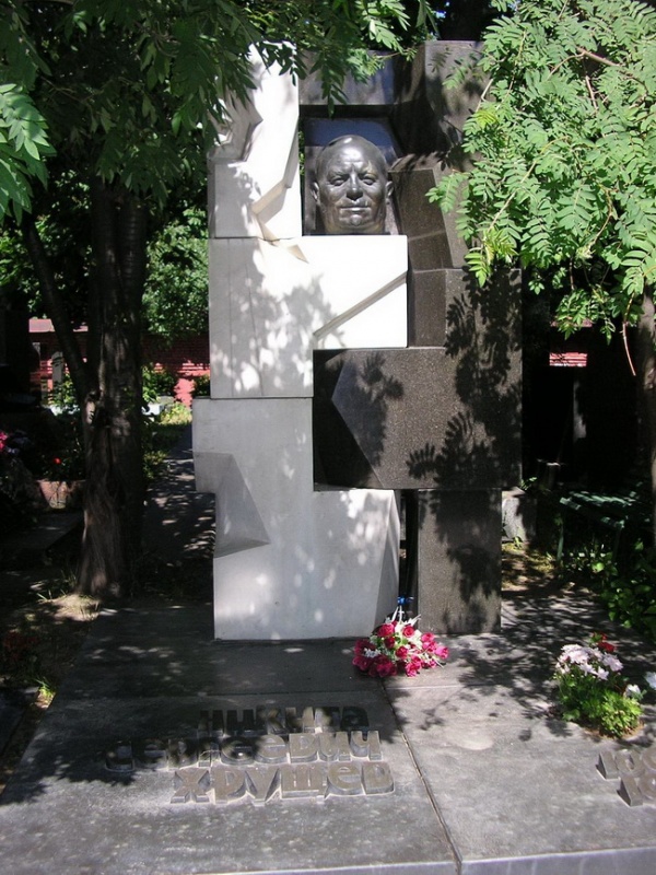 Открытие памятника происходило под дождем в третью годовщину смерти Хрущева в 1974 году. Были все члены его семьи и корреспонденты, была охрана, никого на кладбище не пускали. Никто не произносил речей, и когда члены семьи повернулись и ушли, я с Сергеем Хрущевым и пятью своими друзьями поехал на квартиру к Сергею. Он достал бутылку какого-то столетнего коньяка, которую Хрущеву подарил де Голль, и сказал: «Мой отец выпить этот дорогой коньяк не решился — сейчас мы это сделаем сами» — и мы эту бутылку распили».