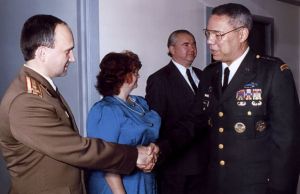 ![]() Посольство Украины в США, официальный прием в честь Вооруженных Сил Украины. На переднем плане — Игорь Смешко и будущий госсекретарь США Колин Пауэлл |