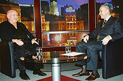 ![]() Марк Рудинштейн - Дмитрию Гордону: "Я не хочу третьей жизни - ее не будет, вернее, ее нет, поэтому хочу успеть что-то рассказать о тех двух, что выпали на мою долю. Сегодня я пришел к вам, потому что впервые после 60-летия у меня появилось желание высказаться. Помните, как говорил Жванецкий сыну: "Парень, я прошел через все, я не стал этим и не стал тем. Я передам тебе свой опыт" Фото Александра ЛАЗАРЕНКО |