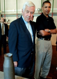 | С сенатором США Ричардом Лугаром, который широко известен как соавтор программы по оказанию России помощи в деле уничтожения оружия массового поражения |