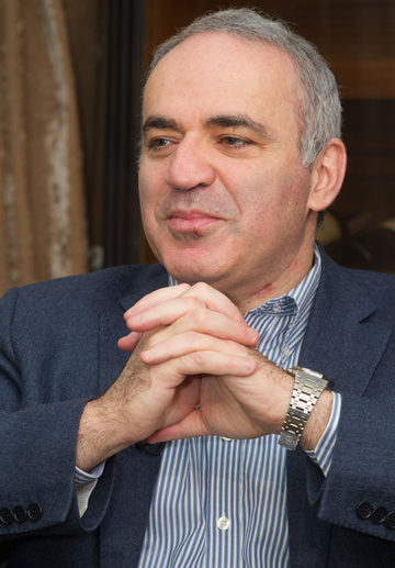 — Вы знаете, мне кажется, вы человек счастливый: 51 год, расцвет сил, живая мама, дети, которые успехи делают, такое место в истории, которое по праву вы заняли и которого никто уже не отнимет, даже если очень захочет... Раз так Россию вы любите, хочу пожелать вам в свободной России жить, где будете комфортно себя чувствовать, гражданином свободного мира оставаясь, как сами о себе сказали. Я за беседу вам благодарен и смотрю вот на эти шахматы на столе... Помните, как в период застоя говорили: «Чем Карпов от Брежнева отличается?». — «Карпов ходит е2-е4...