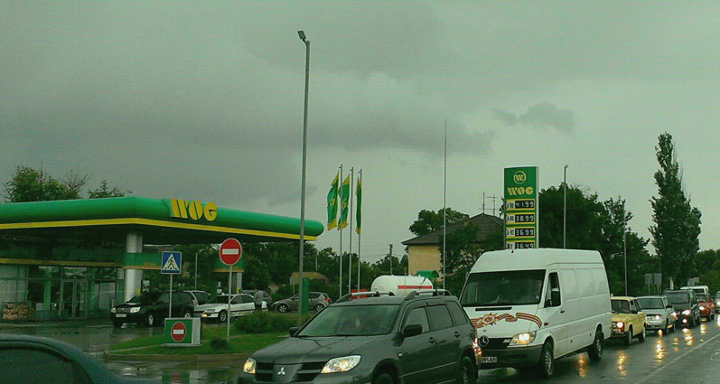 Вдоль трасс знакомые заправки — WOG и ОККО. Цены на бензин ниже, чем в Украине: А-98 стоит чуть более 15 грн. (для сравнения в Киеве — 22-25 грн.), А-95 — 14,2 грн. (18-20 грн.), дизтопливо — 13,2-13,5 грн. (около 18 грн.).
