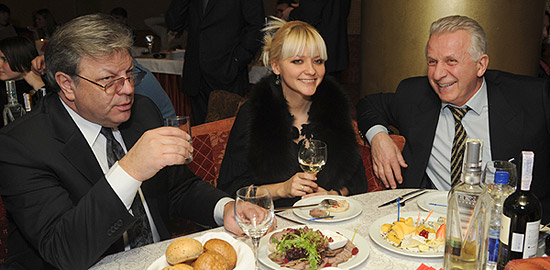 ![]() Актер Владимир Горянский с женой Ларисой и Ольгой Сумской, чья дочь Антонина Паперная получила на конкурсе титул «Первая вице-мисс» |
