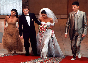 ![]() На свадьбе Степана Черновецкого (слева) Ирэна Кильчицкая была свидетельницей. Справа - заместитель Леонида Черновецкого Денис Бас |
