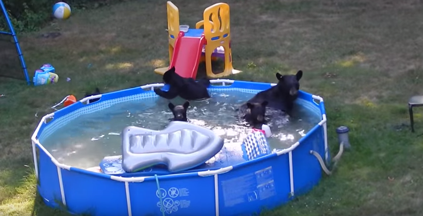 В США медведи устроили вечеринку у бассейна с качелями. Видео